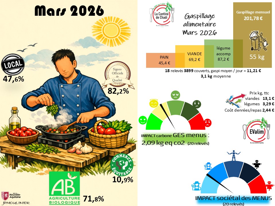 gaspillageINFOgraphie MARS 2026, La Cantine de CHADI [gaspillage alimentaire, Stats, IMPACTS menus] Lycée Petit CHADIGNAC, AgroCampus Saintonge par jean-philippe jean-philippe.mouliniermis à jour le 6 avril 20266 avril 2026