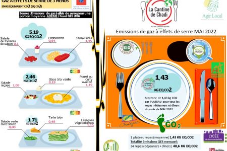 Emissions de Gaz à Effets de Serre : La Cantine de Chadi, mois de Mai 2022 (comparatif avec plateaux ADEME)