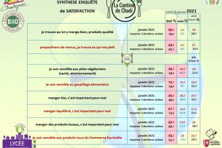 Santé - environnementEnquête, audit de satisfaction Janvier 2021 (La Cantine de Chadi, AgroCampus Saintonge, lycée Le Petit Chadignac, Saintes) par jean-philippe jean-philippe.mouliniermis à jour le 1 mars 20215 février 2021