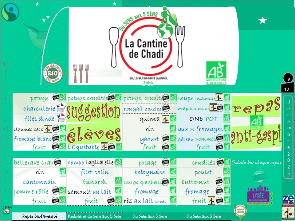 gaspillageJanvier 2025 :INFOgraphie, Bilan, La Cantine de Chadi (bio engagée) Lycée Petit Chadignac, Saintes